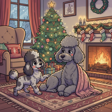 Im neuen Zuhause angekommen, wurde Lou liebevoll empfangen. Anton, Lou‘s neuer großer Pudel-Bruder, zeigte ihr sein Zuhause und ließ sie sogar seine Lieblingsdecke inspizieren. Doch Lou war nicht schüchtern. Mit ihrem munteren Wesen erkundete sie das Wohnzimmer, schnüffelte am Weihnachtsbaum und fand schnell heraus, wo die besten Plätze zum Spielen und Schlafen waren.